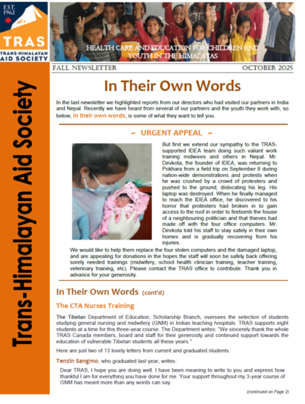 Join TRAS directors and friends at the Gurkha Himalayan Kitchen, 1141 Davie Street, Vancouver for an evening of conversation and great food.